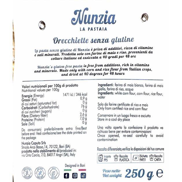 Prodotto nello stabilimento di: via Orta Corcia, 7/3, 84017 Angri (SA), Italy da Nunzia Caputo Srls