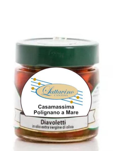 | INGREDIENTI | Peperoncini piccanti (60,7g), olio extra vergine di oliva (42,2g), aceto di vino, sale, zucchero. |